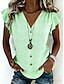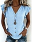 Naisten T-paita T-paidat Rypytetty Yhtenäinen väri Kuvitettu Tavallinen Tyylikäs Vintage Muoti Lyhythihainen V kaula-aukko Tavalliset topit Päivittäin Urheilu Viikonloppu Sininen Musta Valkoinen