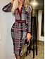 Naisten Mini mekko Bodycon mekko Puolimuodolliset mekot Toimisto Ohut Houndstooth-kuvio Pitkähihainen V kaula-aukko Musta Kesä Syksy
