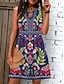 Halloween Naisten Mini mekko Kesämekko Loma Boheemi Pyhäpäivä Normaali Kukka Kuvitettu Paisley-kuvio Hihaton Tiukka pyöreä kaula-aukko Tumman sininen Kesä Kevät