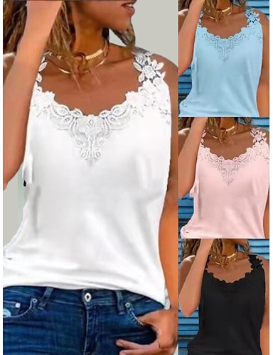 Naisten Pusero Pitsi Topit Camisole Tank Top Hihaton paita Pitsi Tavallinen Tyylikäs Perus Klassinen Hihaton V kaula-aukko Tavalliset topit Päivittäin Pyhäpäivä Bile Sininen Musta Valkoinen Aprikoosi