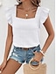 Naisten Paita Pusero Hihaton paita Röyhelö Tavallinen Tyylikäs Klassinen Moderni Hihaton Nelikulmainen kaula-aukko Tavalliset topit Päivittäin Pyhäpäivä Bile Sininen Musta Valkoinen Punastuvan