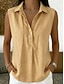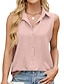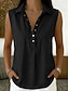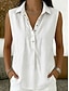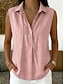 Naisten Kesä paita Poolopaidat Napit Yhtenäinen väri Tavallinen Vintage Tyylikäs Hihaton Kauluskäänne Pitkät topit Kausaliteetti Valkoinen Keltainen Punastuvan vaaleanpunainen Taivaan sininen Musta