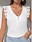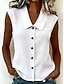 Naisten pellavapaita pusero, hihaton paita, tilkkutäkki, napit, yksivärinen, päivittäin, tyylikäs, perus, hihaton, v-aukkoinen, normaali, päivittäin, juhla, bile, valkoinen+musta, valkoinen+keltainen
