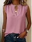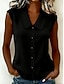 Naisten Pusero Rypytetty Napit Yhtenäinen väri Tyylikäs Perus Vapaa-aika Hihaton V kaula-aukko Tavalliset topit Päivittäin Sininen Musta Valkoinen Keltainen Viini Kesä Kevät