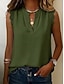 Naisten Satiinitoppi Pusero Napit Yhtenäinen väri Tyylikäs Perus Vapaa-aika Hihaton V kaula-aukko Tavalliset topit Kausaliteetti Päivittäin Sininen Valkoinen Laivaston sininen Khaki Aprikoosi Kes