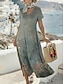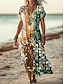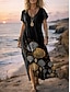 Naisten Maksimekko Boho-mekko Rento mekko A linjainen mekko Painatus mekko Vintage ulko- Loma Viikonloppu Loose Fit Kuvitettu Lyhythihainen V kaula-aukko Musta Keltainen Vaalean vihreä Punastuvan