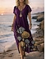 Naisten Maksimekko Boho-mekko Rento mekko A linjainen mekko Painatus mekko Muoti Moderni ulko- Loma Viikonloppu Loose Fit Kukka Kuvitettu Lyhythihainen V kaula-aukko Viini Armeijan vihreä Laivaston