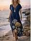 Naisten Maksimekko Boho-mekko Rento mekko A linjainen mekko Painatus mekko Vintage ulko- Loma Viikonloppu Normaali Kukka Kuvitettu Lyhythihainen V kaula-aukko Sininen Tumman vihreä Vaalea purppura