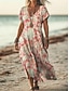 Naisten Maksimekko Rento mekko A linjainen mekko Painatus mekko Muoti Moderni ulko- Loma Viikonloppu Normaali Kukka Kuvitettu Lyhythihainen V kaula-aukko Beesi Kesä Kevät