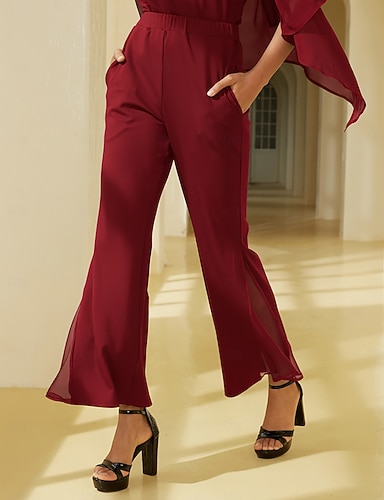 naisten pusero joulu punainen sifonki joustava neulos tilkkutyö 3/4 hihat bateau-kaulus kevät syksy