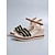 Naisten mustat ja kultaiset kudotut espadrille-kiilakorkoiset sandaalit – boheemi lomatyyli, mukavat platform-avokärkiset kengät rantakohteisiin ja kesämatkoille