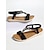 Naisten elegantit mustat T-hihnasandaalit - mukavat boheemit matalat kengät kristallikoristein rantalomiin, kesähäihin ja ulkoiluristeilyihin