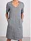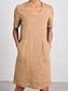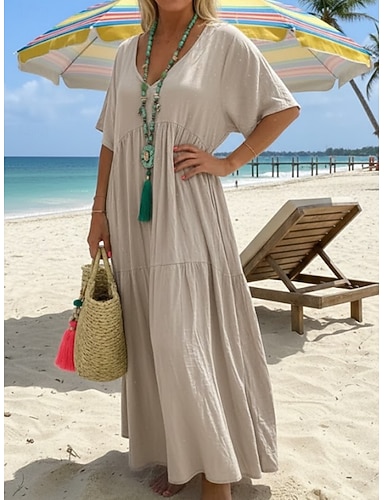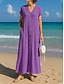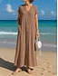 Naisten puuvilla-linnea maksi mekko shift-mekko rento päivittäinen ranta löysä istuvuus yksivärinen lyhyt hihainen V-pääntie musta beige kesä kevät