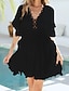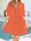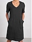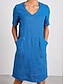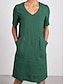 Naisten puuvilla-linnea midi mekko kesämekko rento päivittäinen tavallinen istuvuus lyhyt hihainen V-pääntie sininen musta ruskea vihreä kesä kevät
