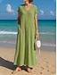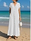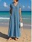 Naisten puuvilla-linnea maksi mekko A-linjainen mekko kesämekko rento päivittäinen löysä istuvuus yksivärinen lyhyt hihainen V-pääntie sininen musta valkoinen kameli kesä