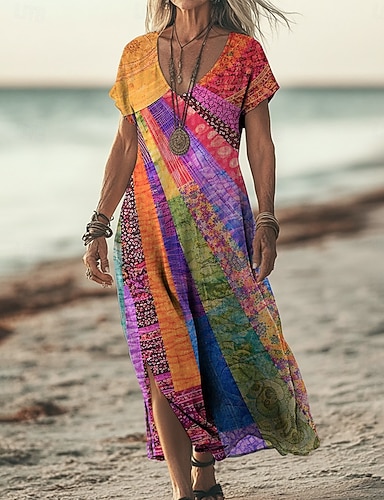 Naisten Maksimekko Boho-mekko Rento mekko Kellomekko Kesämekko Muoti Klassinen Moderni Päivittäin ulko- Loma Normaali Paisley-kuvio Lyhythihainen V kaula-aukko Sininen Purppura Oranssi Apila Kes