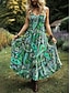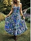 naisten rento mekko swing mekko pitkä mekko maxi mekko sininen vaaleanvihreä fuksia hihaton kukkaprintti kevät kesä v kaula 2023 s m l xl xxl