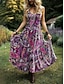 Mardi gras Naisten Maksimekko Rento mekko Kellomekko Kesämekko Boho-mekko Vintage Hiekkaranta Normaali Kukka Kuvitettu Hihaton Tiukka pyöreä kaula-aukko Punastuvan vaaleanpunainen Purppura Apila Kes