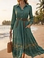 Naisten Maksimekko Rento mekko Kellomekko Kesämekko Boho-mekko Böömi Muoti Vapaa-aika ulko- Loma Päivittäin Loose Fit Kukka Paisley-kuvio Tribaali Lyhythihainen V kaula-aukko Armeijan vihreä Rubiini