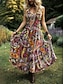 Naisten Maksimekko Rento mekko Kellomekko Kesämekko Boho-mekko Vintage Hiekkaranta Normaali Kuvitettu Paisley-kuvio Hihaton Tiukka pyöreä kaula-aukko Sininen Purppura Oranssi Apila Kesä Kevät