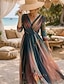 naisten vapaa-ajan mekko keinu mekko kukkaprintti v kaula pitkä mekko maxi mekko havaijilainen rento päiväloma 3/4-pituiset hihat kesä
