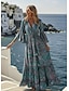 Naisten Maksimekko Boho-mekko Rento mekko Kellomekko Tyylikäs Muoti Moderni ulko- Loma Bile Normaali Tribaali Pitkähihainen V kaula-aukko Sininen Kesä Kevät