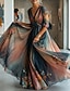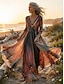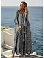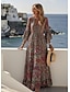 Naisten Maksimekko A linjainen mekko Fit And Flare Mekko Juhla Vapaa-aika Boheemi Päivittäin Juhla Bile Loose Fit Kuvitettu Geometrinen Trooppinen Pitkähihainen V kaula-aukko Sininen Musta Rubiini