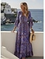 Naisten Maksimekko Rento mekko Kellomekko Boho Chic Mekot Böömi Vapaa-aika Boheemi Loma Päivittäin Loose Fit Kukka Solmuvärjätty 3/4 hiha V kaula-aukko Vaalea purppura Apila Kesä Kevät