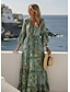 Naisten Maksimekko Boho-mekko Vintage mekko Rento mekko Vintage Päivittäin ulko- Loma Loose Fit Kukka Pitkähihainen V kaula-aukko Sininen Vaalean vihreä Laivaston sininen Tumman vihreä Kevät Syksy