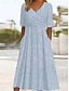 Naisten Midimekko A linjainen mekko Kesämekko Loma Vapaa-aika Päivittäin Pyhäpäivä Loose Fit Kuvitettu Geometrinen Raidoitettu Puolihiha Tiukka pyöreä kaula-aukko Sininen Harmaa Kesä