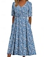 Naisten Mini mekko Kesämekko Tpaitamekko A linjainen mekko Loma Vapaa-aika Päivittäin Hiekkaranta Pyhäpäivä Normaali Kuvitettu Geometrinen Abstrakti Lyhythihainen Tiukka pyöreä kaula-aukko Sininen