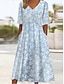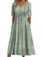 Naisten Polvipituinen mekko A linjainen mekko Loma Vapaa-aika Loose Fit Kuvitettu Abstrakti 3/4 hiha V kaula-aukko Sininen Musta Rubiini Apila Kesä Kevät Syksy