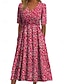 Naisten Midimekko Kietaisumekko Kukka mekko Muoti Moderni ulko- Loma Bile Normaali Kukka Lyhythihainen V kaula-aukko Sininen Rubiini Laivastosininen Apila Kesä Kevät