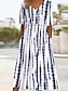 Naisten Pitkä mekko Maxi mekko Väljä mekko Kesämekko Tpaitamekko Loma Trooppinen Tyylikäs Hiekkaranta Loma Juhla Normaali Geometrinen Raita Lyhythihainen Tiukka pyöreä kaula-aukko Sininen Valkoinen