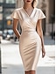 Naisten Polvipituinen mekko Satiini mekko Vartalonmyötäinen Tyylikäs Muoti Moderni ulko- Loma Bile Normaali Tavallinen Lyhythihainen V kaula-aukko Samppanja Kesä Kevät
