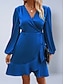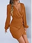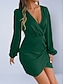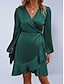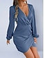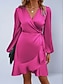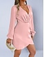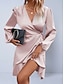 Naisten Mini mekko Satiini mekko Juhlamekko Kietaisumekko Tyylikäs Muoti Moderni ulko- Loma Juhla Normaali Tavallinen Pitkähihainen V kaula-aukko Musta Punastuvan vaaleanpunainen Laivastosininen