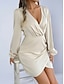 Naisten Midimekko Satiini mekko Juhlamekko Kotelomekko Kietaisumekko Tyylikäs Moderni Iltajuhlat Juhla Erikoistilaisuus Normaali Tavallinen Pitkähihainen V kaula-aukko Valkoinen Punastuvan