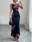 Naisten Maksimekko Satiini mekko Vartalonmyötäinen Kukka mekko Painatus mekko Tyylikäs Muoti Moderni ulko- Loma Juhla Normaali Kukka Hihaton Tiukka pyöreä kaula-aukko Laivaston sininen Kesä Kevät