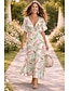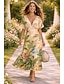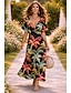 Naisten Midimekko Satiini mekko Väljä mekko Tyylikäs Normaali Kuvitettu Trooppinen Lyhythihainen V kaula-aukko Musta Keltainen Punastuvan vaaleanpunainen Apila Kesä Kevät