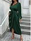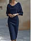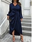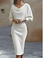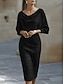 Naisten midimekko, kotelomekko, vartalonmyötäinen mekko, juhlamekko, syntymäpäivä, cocktail-mekko, päivittäinen normaali istuvuus, yksivärinen, pitkähihainen, pyöreä kaula-aukko, sininen, hopea, viininpunainen, musta, syksy/talvi