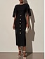 Naisten Midimekko Musta mekko Kotelomekko Tyylikäs Muoti Moderni Päivittäin Toimisto Pyhäpäivä Normaali Tavallinen 3/4 hiha Tiukka pyöreä kaula-aukko Venekaula-aukko Musta Valkoinen Punastuvan