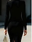Naisten Polvipituinen mekko Juhlamekko Kotelomekko Kirkko mekko Muoti Moderni Kypsä ulko- Talvi mekko Loma Normaali Puhdas väri Pitkähihainen Tiukka pyöreä kaula-aukko Musta Valkoinen Punastuvan