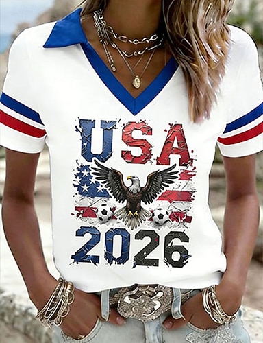Amerikan itsenäisyyspäivä Naisten Paita Puuvillaiset pellavapaidat Pusero Napit Kukka Kuvitettu Lippu Vintage Tyylikäs Vapaa-aika Hihaton Lyhythihainen Paitapuserokaula-aukko Pitkät topit Päivittäin