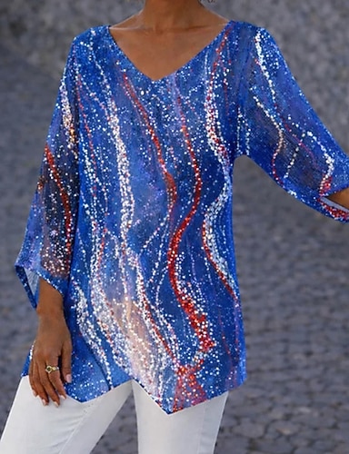 Naisten Pusero Paljetti Tavallinen Tyylikäs Vintage Pitkähihainen V kaula-aukko Tavalliset topit Päivittäin Pyhäpäivä Bile Sininen Musta Viini Purppura Apila Syksy Talvi