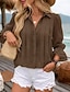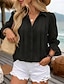Naisten Popover paita Rento paita Pusero Yhtenäinen väri Tyylikäs Loma Vapaa-aika 3/4 hiha V kaula-aukko Tavalliset topit Työ Hiekkaranta Pyhäpäivä Sininen Musta Valkoinen Rubiini Purppura Kesä Kevät