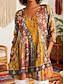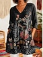 Naisten Pusero Painettu Kukka Kuvitettu Böömi Vintage Vapaa-aika 3/4 hiha V kaula-aukko Tavalliset topit Päivittäin Musta Rubiini Oranssi Apila Kesä Kevät Syksy
