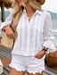 Naisten 100% puuvillaa Paidat Napitettava pusero Yksivärinen Perus Vapaa-aika 3/4-hiha V-pääntie Normaali Topit Päivittäin Musta Valkoinen Punainen Khaki Kesä