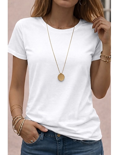 Naisten T-paita T-paidat Yhtenäinen väri Klassinen Vapaa-aika Lyhythihainen Tiukka pyöreä kaula-aukko Tavalliset topit Päivittäin Bile Vaalea khaki Musta Valkoinen Punastuvan vaaleanpunainen Rubiini