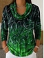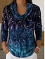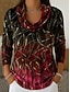 Naisten Tunika T-paidat Painettu Porrastettu Kukka Kuvitettu Geometrinen Tyylikäs Vintage Muoti Pitkähihainen Laskostettu kaulus Tavalliset topit Päivittäin Bile Viikonloppu Sininen Rubiini Purppura