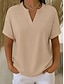 Naisten Puuvillaiset pellavapaidat Pusero Napit Yhtenäinen väri Päivittäin Perus Vapaa-aika Lyhythihainen V kaula-aukko Tavalliset topit Päivittäin Sininen Valkoinen Punastuvan vaaleanpunainen